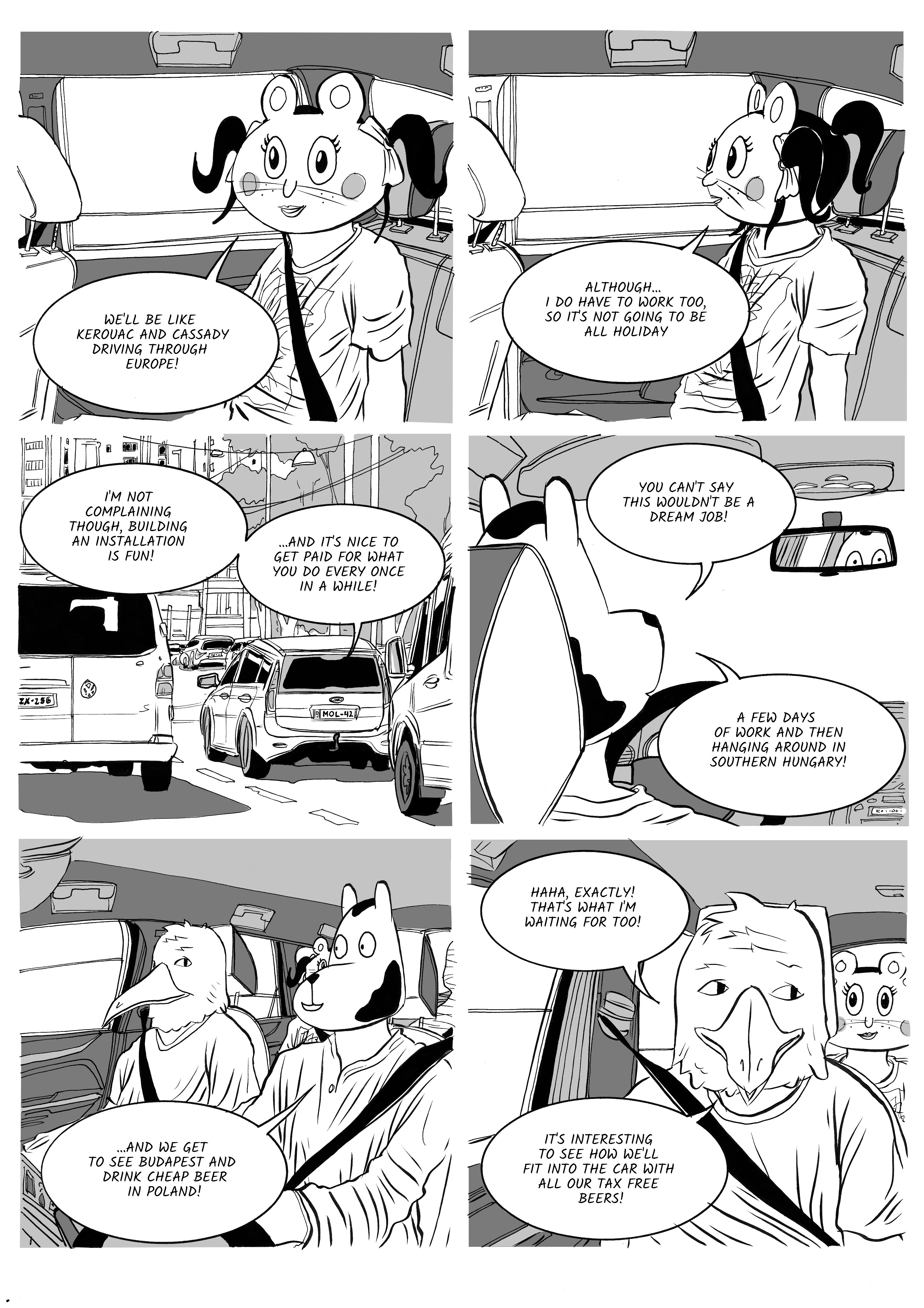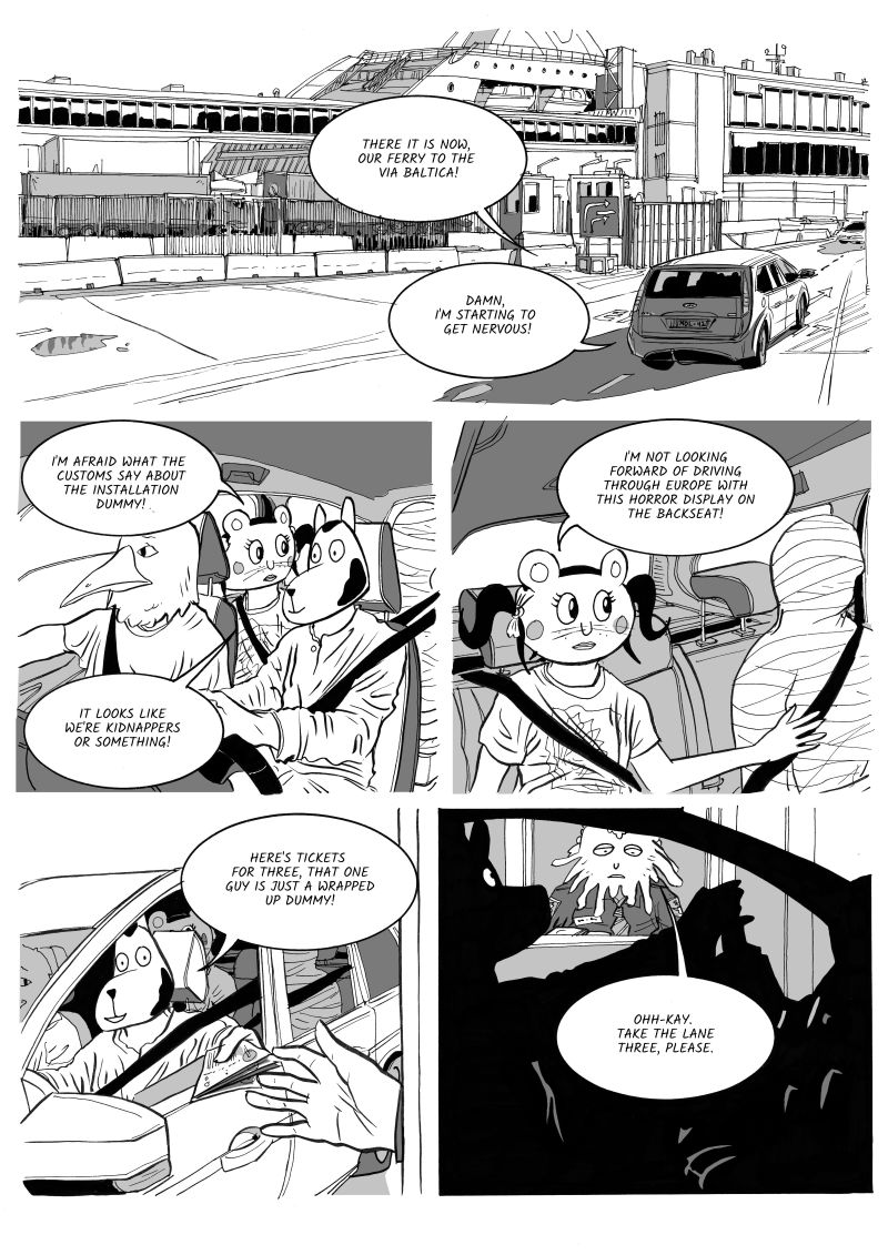 Three friends and a dummy named Slad Moloton travel the beautiful Via Baltica road from Helsinki To Southern Hungary.